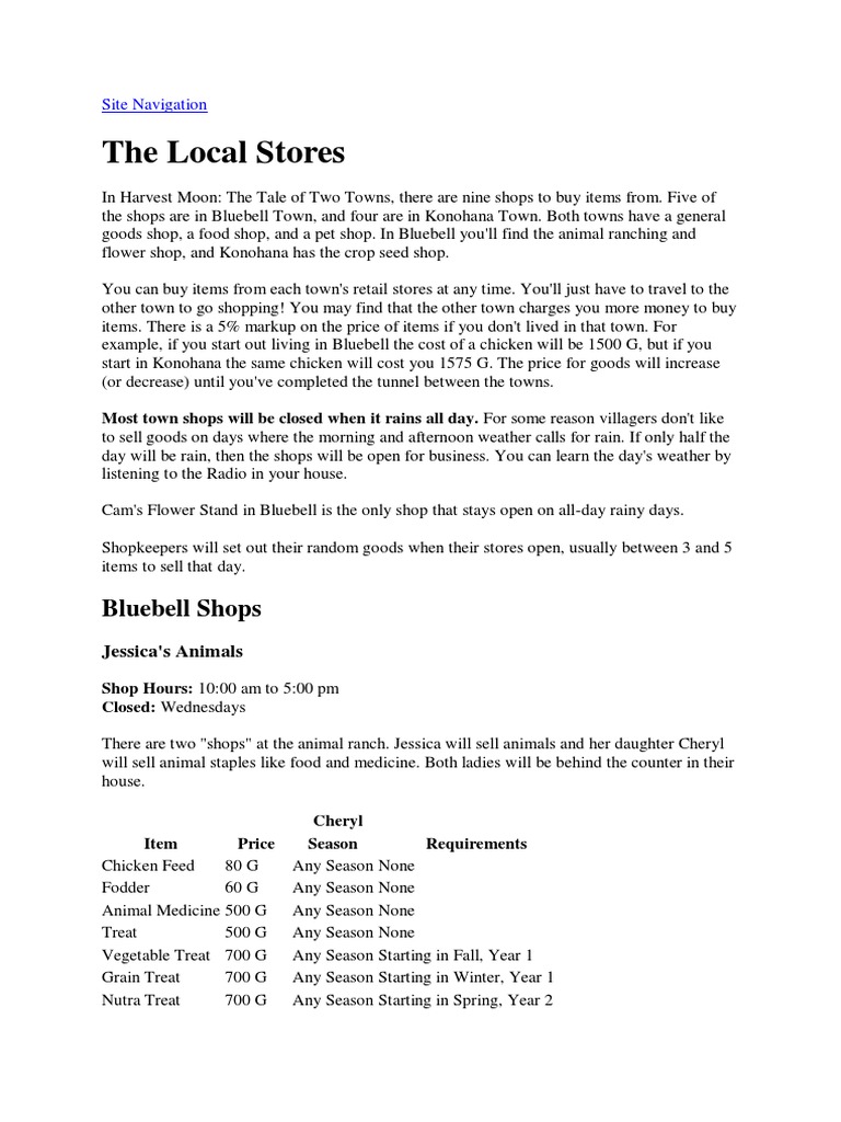 The Store Inventories Harvest Moon The Tale Of Two Towns Soup Sushi